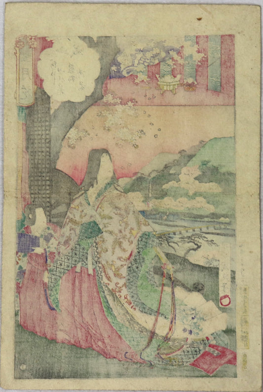 Flowers at Kinkaku-ji in Yamashiro Province from the series " Snow,Moon, Flower " by Chikanobu / Fleurs au Kinkaku-ji dans la province de Yamashiro de la série " Neige, Lune, Fleur "par Chikanobu (1884)