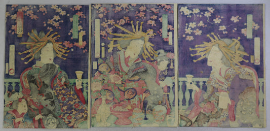 Enlightenment of the three Top Courtesans by Toyokuni IV / Eveil des trois top courtisanes par Toyokuni IV ( 1870)