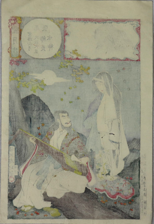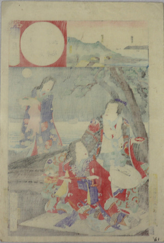Moon at Sume in Settsu Province from the series "Snow, Moon, Flower "by Chikanobu / Lune à Suma dans la province de Settsu de la série "Neige, Lune, Fleur" par Chikanobu (1884)