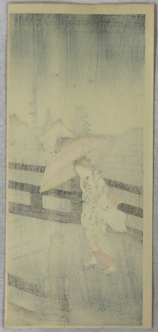 Snowy day at Ryogokubashi's bridge from the series " Snow,Moon,Flowers"by Kunichika / Jour neigeux sur le pont de Ryogoku de la série "Neige, Lune, Fleurs" par Kunichika