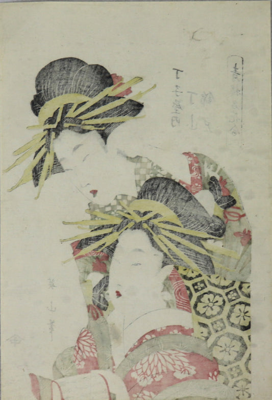 Courtesans Choyama and Nishikido from the chojiya house from "Famous flowers of the courtesan district "by Eizan / Les Les courtisanes Choyama et Nishikido de la maison Chojiya de la série " Célèbres fleurs du quartier des plaisirs" par Eizan ( 1807)