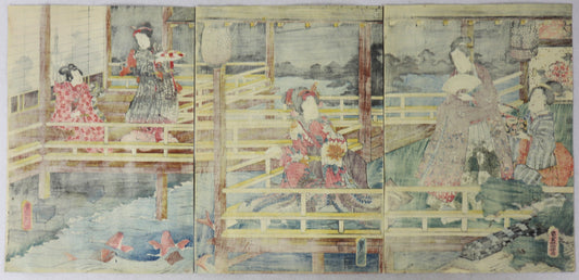 Prince Genji enjoying the evening cool by Kunisada II / Prince Genji profitant de la fraicheur du soir par Kunisada II