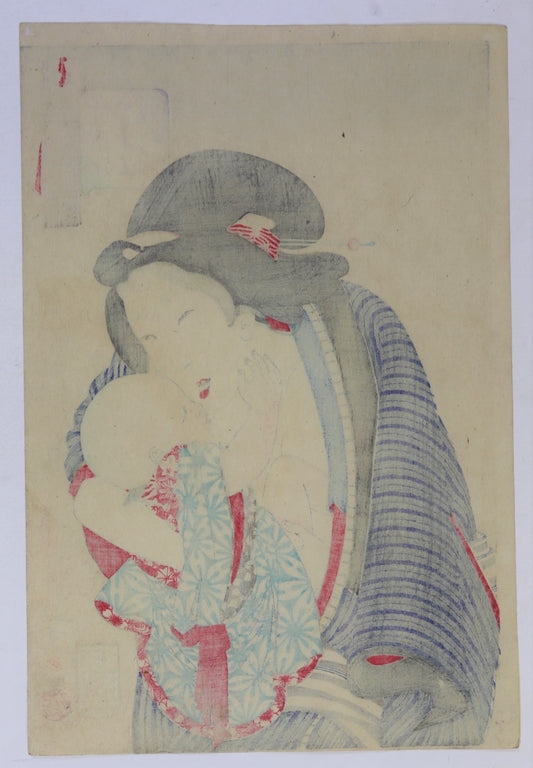 Woman and Child in Shower from the series " Six Selected Moon Fairies "by Kuniyasu / Beauté et Enfant sous l'averse de la série " Six Fées de la Lune Sélectionnées " par Kuniyasu
