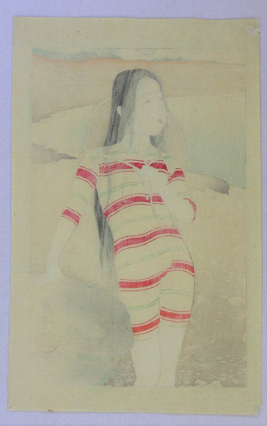 Sea-bathing beauty by Kogyo / Beauté prenant un bain de mer par Terasaki Kogyo (1903)