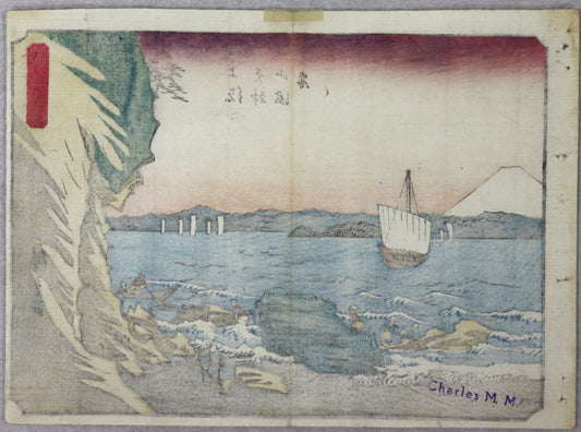 The coast at Tenjinyama in Kazusa Province from the series "Thirty-Six Views of Mt.Fuji" by Hiroshige / La côte à Tenjinyama dans la povince de Kazusa de la série " Trente-Six Vues du Mont Fuji" par Hiroshige (1852)