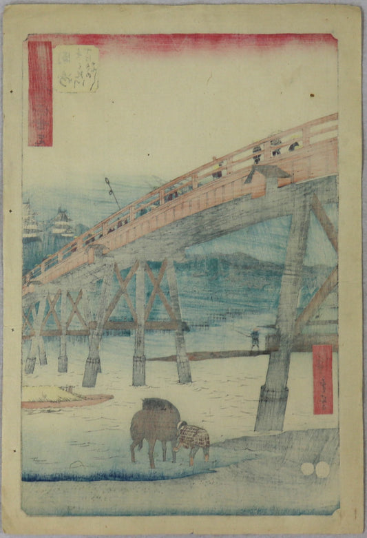 The Suidô-bashi bridge at Edo from the series "Thirty-Six Views of Mt.Fuji" by Hiroshige / Le pont Suidô-bashi à Edo de la série " Trente-Six Vues du Mont Fuji" par Hiroshige (1852)