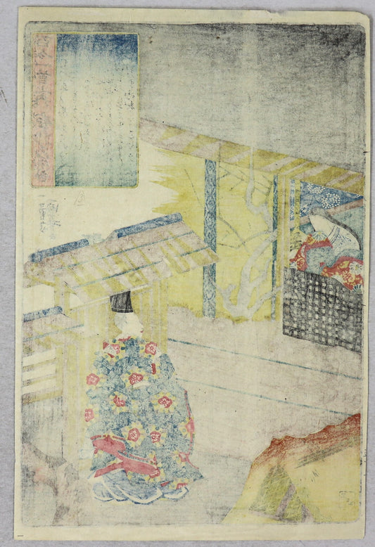 Poem by Udaishô Michitsuna from the series " One hundred Poems by One Hundred Poets "by Kuniyoshi / Poème par la mère d'Udaisho Michitsuna de la série " Cent poèmes par Cent poètes" par Kuniyoshi