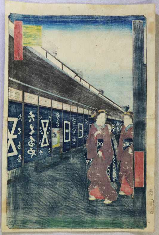 Views of Cotton Goods lane, Odenma-cho from the series " 100 Famous Views of Edo "by Hiroshige / Vue des boutiques de biens de coton à Odenma-cho de la série " Cent célèbres vues d'Edo" par Hiroshige (1858)