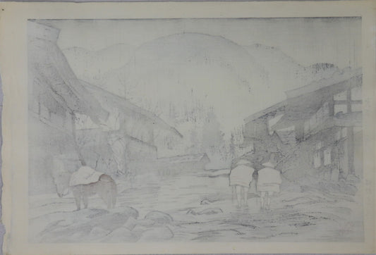 Rainy day at Ohira Pass in Shinshu by Tsuruta Goro / Jour pluvieux dans la passe d'Ohira à Shinshu par Tsuruta Goro (1936)