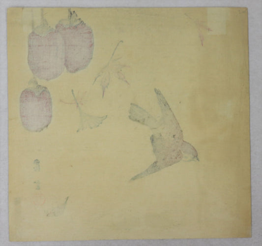 Sparrow and Kaki ( Japanese Persimmon) by Shoun / Moineau et Kaki par Yamamoto Shoun (1910's)