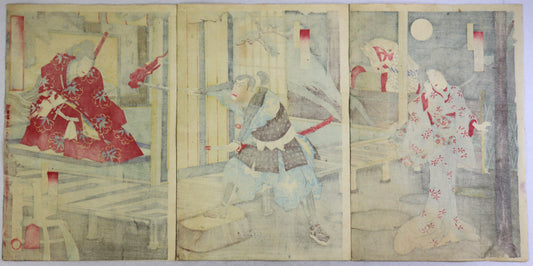 Sakura Sogoro and Family from the series " New Selections of Eastern Brocade pictures" by Yoshitoshi / Sakura Sogoro et sa famille de la série "Nouvelles Sélections de Brocade de l'Est" par Yoshitoshi ( 1886)