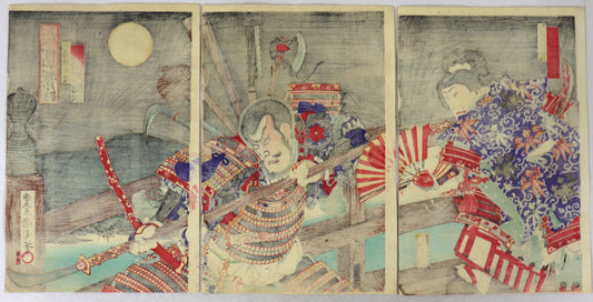 Under moonlite on Gojo Bridge by Kunichika / Sous la lumière de la Lune sur le pont Gojo par Kunichika (1889)
