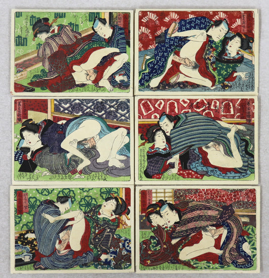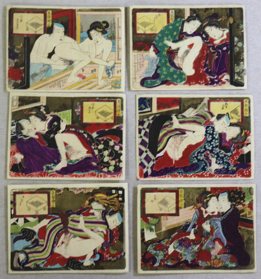 Twelve erotic scenes by Utagawa school's artist ( Complete set) / 12 scènes érotiques par un artiste de l'école Utagawa ( set complet)