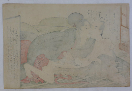 An amorous couple on Veranda from the series " Poems of the Male and Female Maneemon " by Koryusai / Un couple amoureux sur la Véranda de la série " Poèmes de L'homme et de la femme Maneemon " par Koryusai (1770-1780's)