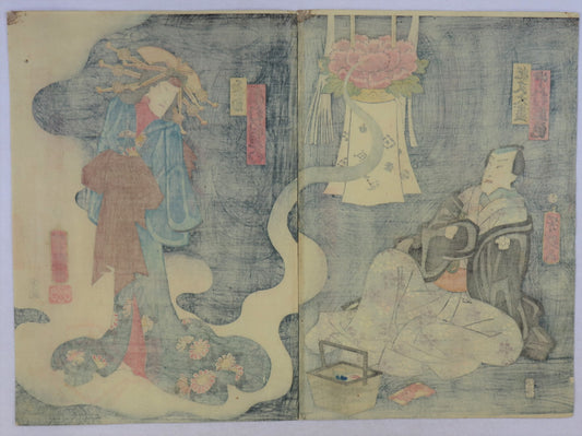 The appearance of the ghost of Tamagiku by Yoshiiku / L'apparition du fantome de Tamagiku par Yoshiiku (1862)