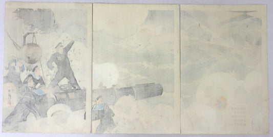 Minamizawa Yasuo during the naval battle at Port Arthur by Okura Kôtô / Minamizawa Yasuo pendant la bataille navale à Port Arthur par Okura Kôtô ( 1904)