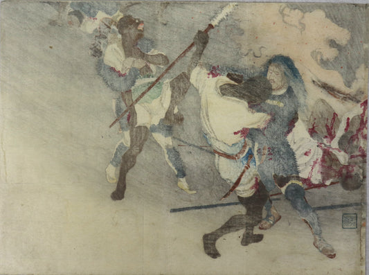 Tsukushima Masamori vs Kyosokabe Yataro from the series " Famous Fight between Brave Men " by Yoshitoshi / Tsukushima Masamori vs Kyosokabe Yataro de la série " Combats Célèbres entre Hommes Courageux" par Yoshitoshi ( 1866)