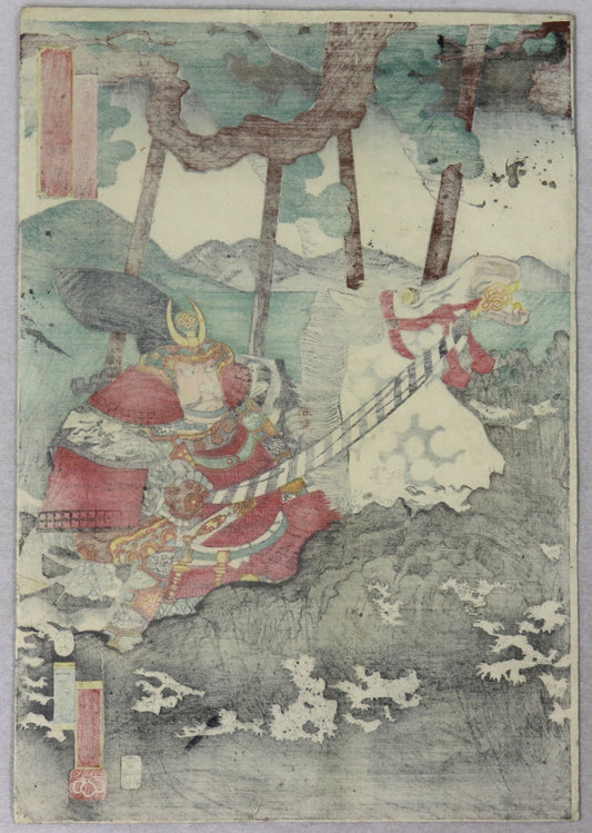 Sato Tadanobu at Mt. Yoshino by Utagawa Toyonobu / Sato Tadanobu se sacrifiant au mont Yoshino par Toyonobu ( 1882)