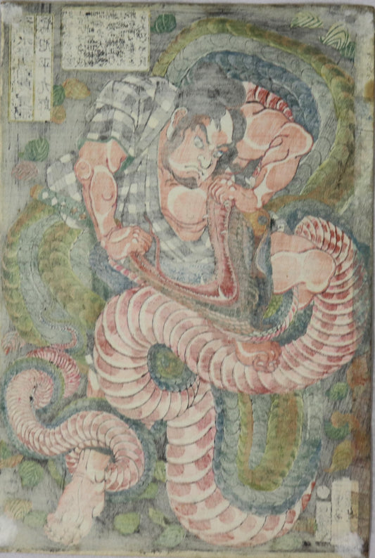 Minamoto no Yoriie against Giant snake by Kunisada / Minamoto no Yoriie contre un serpent géant par Kunisada ( 1842's)