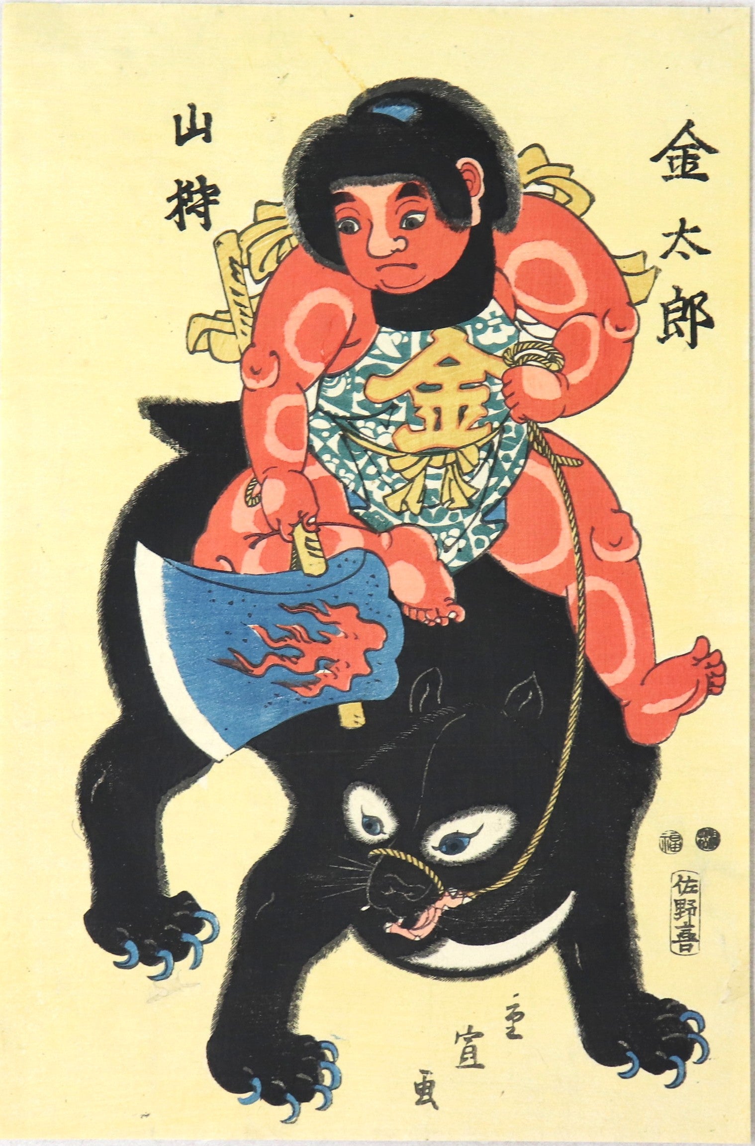 Print ‘s title ( Titre de l’estampe): Kintaro riding a bear / Kintaro montant un ours